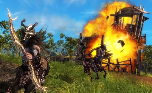 | Квесты и система динамических событий Созданием мира, где вы ощущаете всё происходящее на своей шкуре, мира, который кажется по-истине живым, Guild Wars 2 продвинет жанр MMORPG вперёд. Ядром здесь является система событий, позволяющая миру динамически изменяться в зависимости от действий и принятых игроками решений. Решение даже одного игрока может инициировать каскад событий на карте, выстраивая их цепочку так, что в результате контент для игроков на этой карте изменится очень сильно. Многие разработчики уже пытались решать эту проблему, но мы с Guild Wars 2 пошли дальше. Тогда как другие мультиплеерные квестовые системы были вида "победи или провали квест", наши динамические события развиваются по мере взаимодействия с игроками, учитывают исход их действий. Если предыдущие системы сбрасывались, и всё начиналось заново, без изменения мира, то наши динамические события выстраиваются в цепочки, каскадируются по всей карте и оставляют на ней постоянные следы после своего завершения. В классических MMO квест после завершения не оказывает никакого влияния на игровой мир. Вы получаете награду и двигаетесь дальше в поисках нового квеста. Мир не становится лучше или хуже из-за ваших действий. В Guild Wars 2 же исход каждого события напрямую влияет на мир вокруг. Если вражеская армия копателей (dredge ) выступила из главного лагеря, игроки будут призваны на помощь для её уничтожения. Если она была уничтожена, за этим последуют другие события. Игроки смогут прорубить себе путь через базу копателей, сразиться с её командиром, спасти пленных союзников из тюрем копателей и даже удерживать базу в своих руках, отбиваясь от лезущих из подземных глубин копателей, которые пытаются её вернуть. Если же игроки не смогут уничтожить армию, она оснует форт на бывшей до этого безопасной для игроков территории. Копатели начнут посылать припасы и материалы с основной базы для укрепления форта, воздвигая стены, башни и осадные орудия, чтобы усилить защиту форта. После этого копатели начнут вылазки из форта на окрестные поселения, дружественные игрокам, отправляя на холмы снайперов, а в деревни - отряды для захвата, разрушая укрепления копателешагателями (dredge walkers). Все эти события выльются в дальнейший каскад событий, так же полностью зависящих от действий игроков. К примеру, если игроки не мобилизуются для уничтожения снайперов копателей, снайперы начнут отстреливать жителей и торговцев в близлежащих деревнях. Если игроки не смогут предупредить захват деревни нападающим отрядом, им понадобится собирать силы для того, чтобы отбить эту деревню и освободить её жителей. Весь этот контент - результат одного единственного события - армии копателей, шествующей через карту. Эти примеры - лишь некоторые из тысяч событий, созданных нами для Guild Wars 2, в которой каждое действие игроков будет иметь прямой, заметный и очевидный результат и эффект в игровом мире. Личная сюжетная линия и взаимодействие с NPC При создании персонажа у игрока появляется возможность сделать выбор и развить предысторию персонажа. Этот выбор будет определять стиль личной сюжетной линии, и как НПЦ будут взаимодействовать с игроком. Этот выбор никак не будет ограничивать контент в открытом мире или личной сюжетной линии. Персональная сюжетная линия и окружающая обстановка в личном инстансе будет изменяться 
